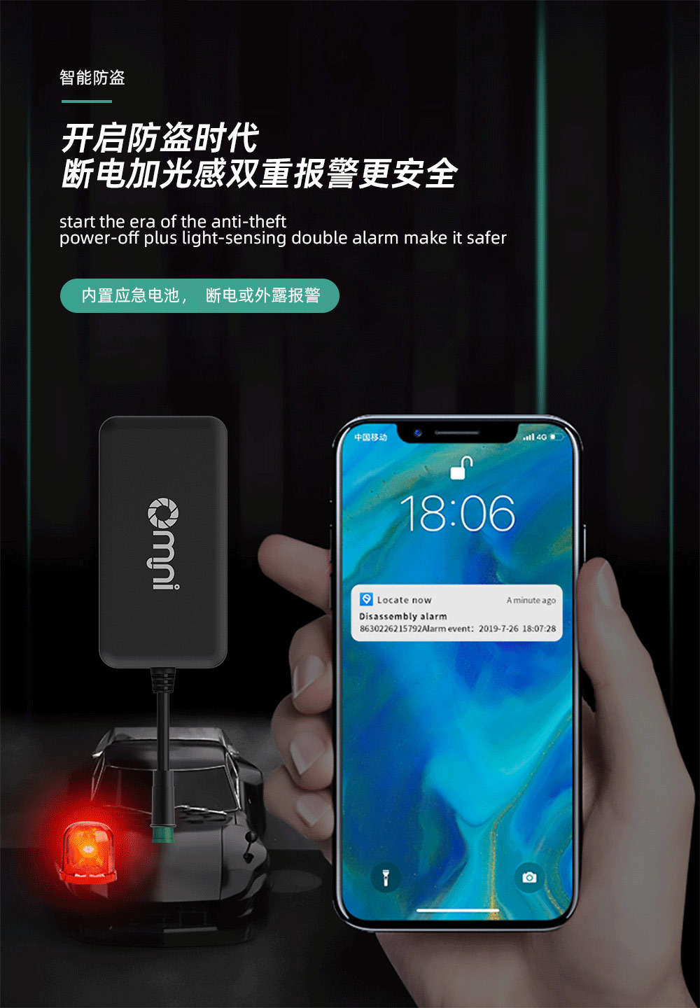 3.車載定位器具有報警功能,拿電瓶車來說,鎖車之后移動異常手機便會收到提示,如果車不幸被偷了,大概率還能通過車載定位器找回